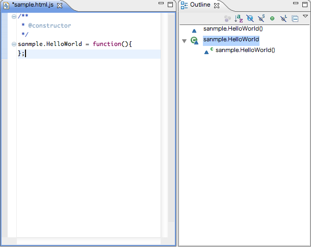 /** * @constructor */ sample.HelloWorld = function(){ };